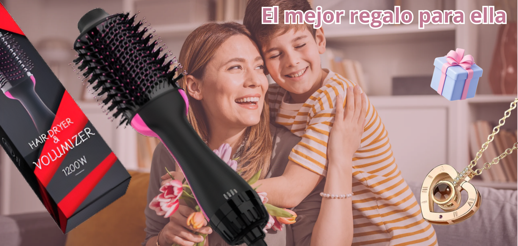 Este delicado collar proyecta la frase “Te amo” en 100 idiomas, un símbolo único de amor infinito. Y lo mejor: ¡va de regalo con tu compra del cepillo 3en1!